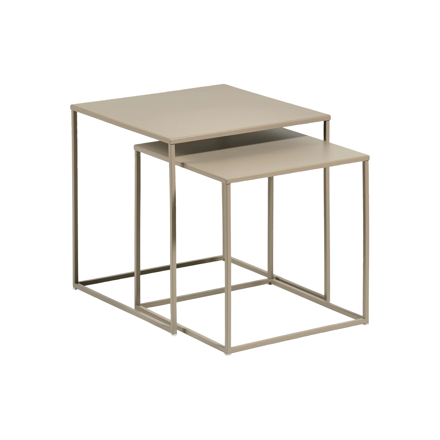 Kleine sandfarbene Tische, die überall in der Wohnung sehr dekorativ sind, z. B. im Wohnzimmer als Couchtisch-Set, im Flur oder im Schlafzimmer. Sie nehmen nicht viel Platz in Anspruch und lassen sich leicht umstellen.