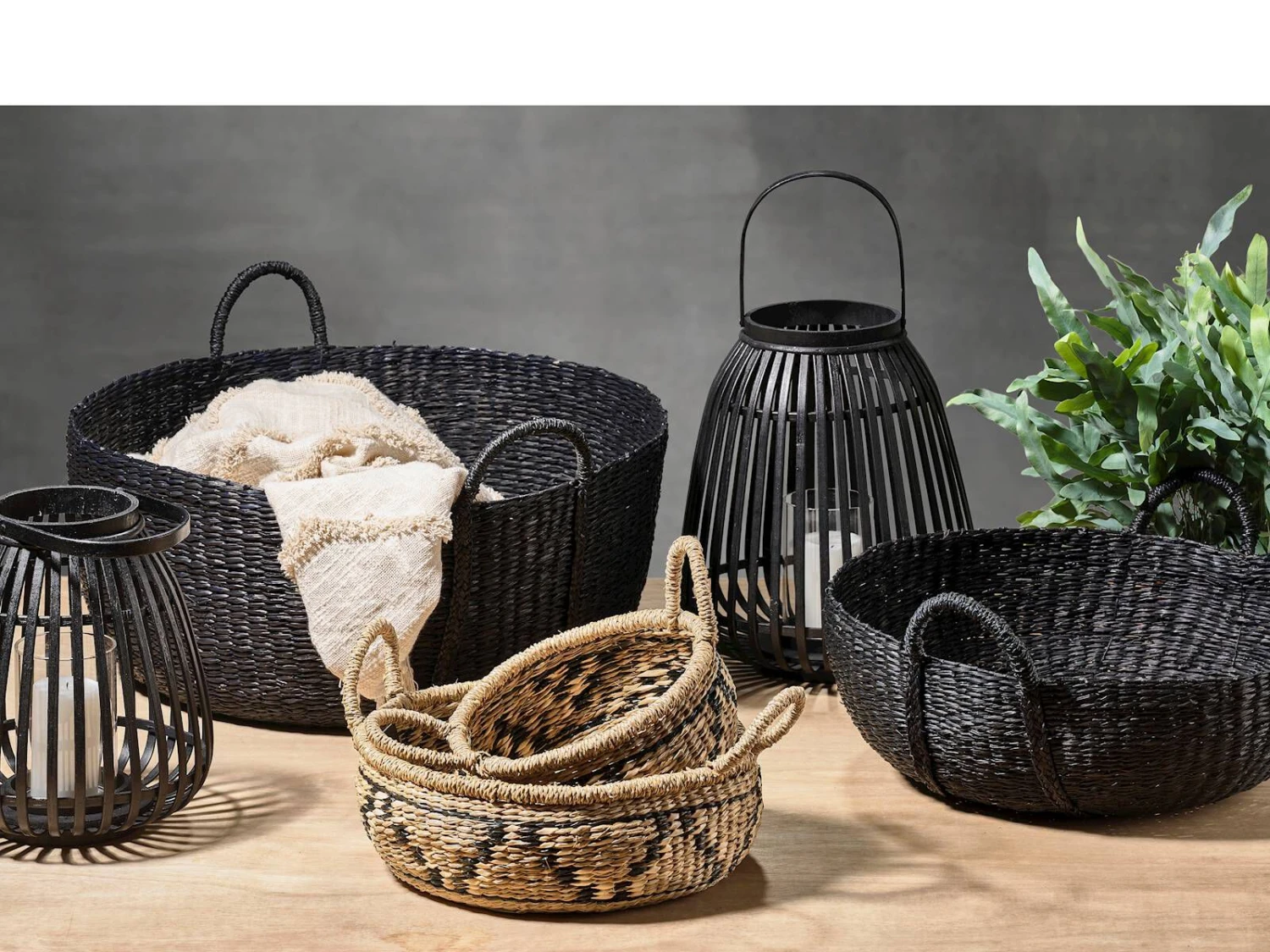 Laterne Bambus/Glas Schwarzt/Klar