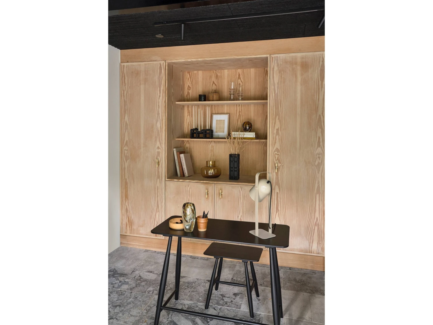 Hocker aus schwarzlackiertem Eichenholz. Das schlichte, stilvolle Design passt perfekt zu einer skandinavischen Einrichtung mit entspannter Atmosphäre, und der Hocker ist aus wunderschönem Eichenholz hergestellt. Für den Innenbereich geeignet.