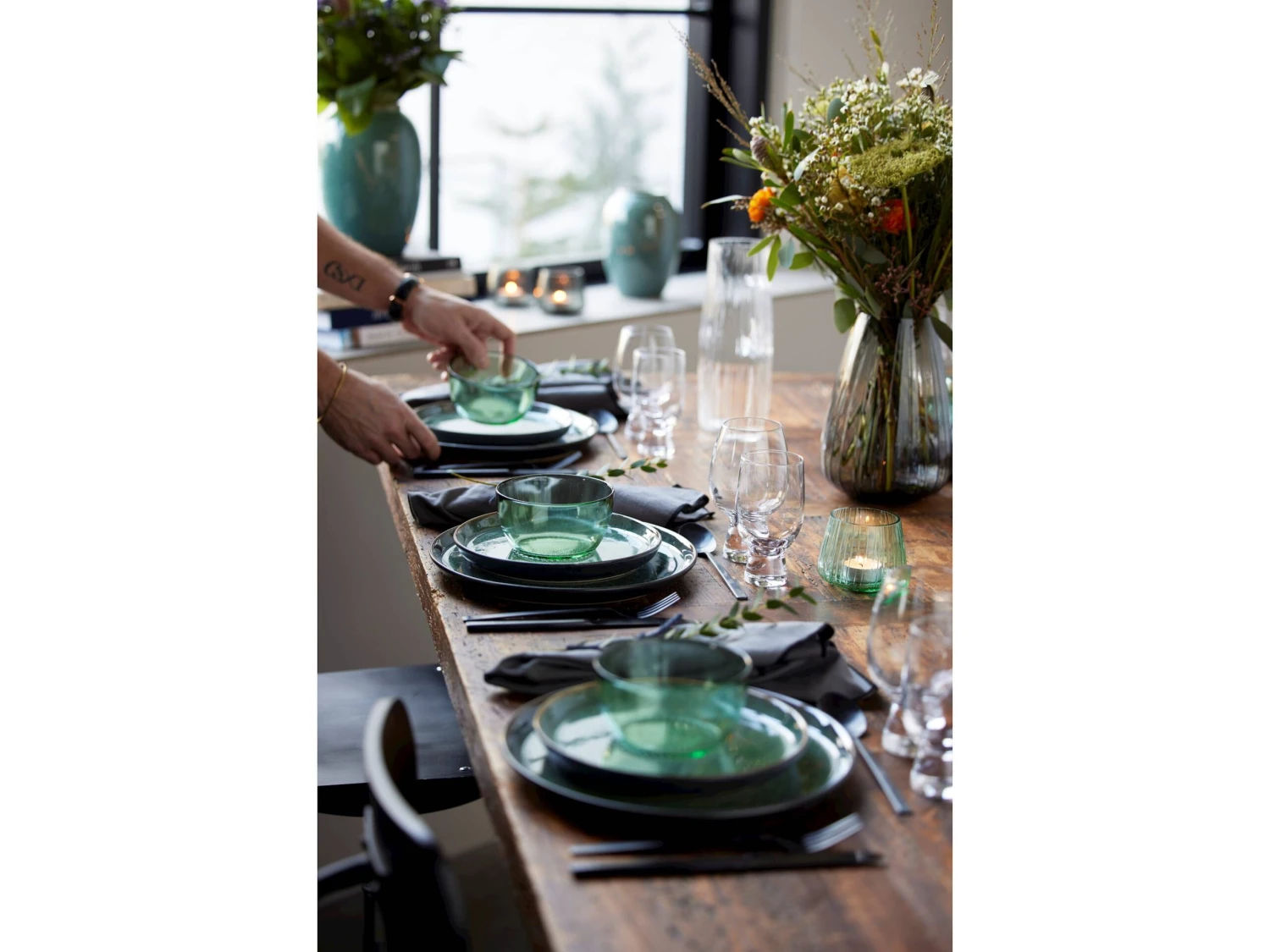 Hübscher Gläser geben dem gedeckten Tisch den letzten Schliff, und Ihr Tisch wird noch strahlender und verlockender, wenn die einzelnen Elemente perfekt aufeinander abgestimmt sind. Die Gläser dieser hübschen Kristallserie sind mit einem kleinen Fuß aus klarem oder gefärbtem Glas gearbeitet, der mit den Nuancen des farbigen Steinzeugs von BITZ abgestimmt ist.