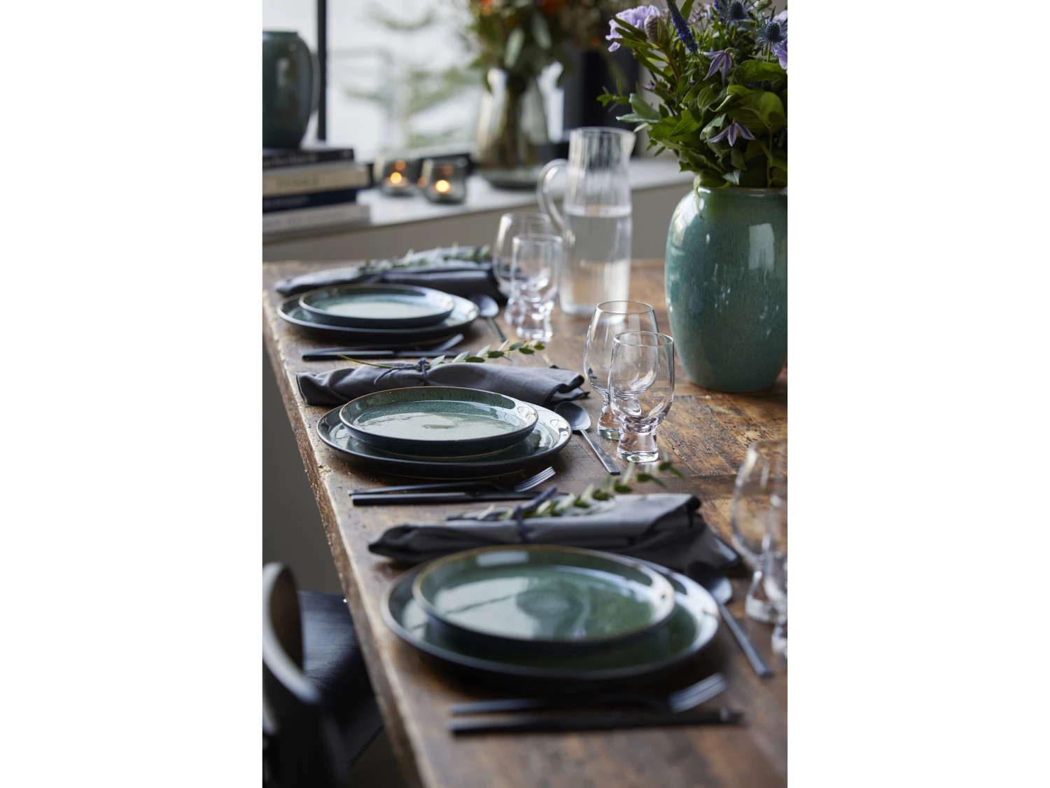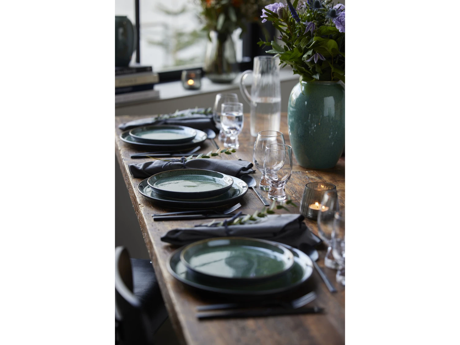 Hübscher Gläser geben dem gedeckten Tisch den letzten Schliff, und Ihr Tisch wird noch strahlender und verlockender, wenn die einzelnen Elemente perfekt aufeinander abgestimmt sind. Die Gläser dieser hübschen Kristallserie sind mit einem kleinen Fuß aus klarem oder gefärbtem Glas gearbeitet, der mit den Nuancen des farbigen Steinzeugs von BITZ abgestimmt ist.
