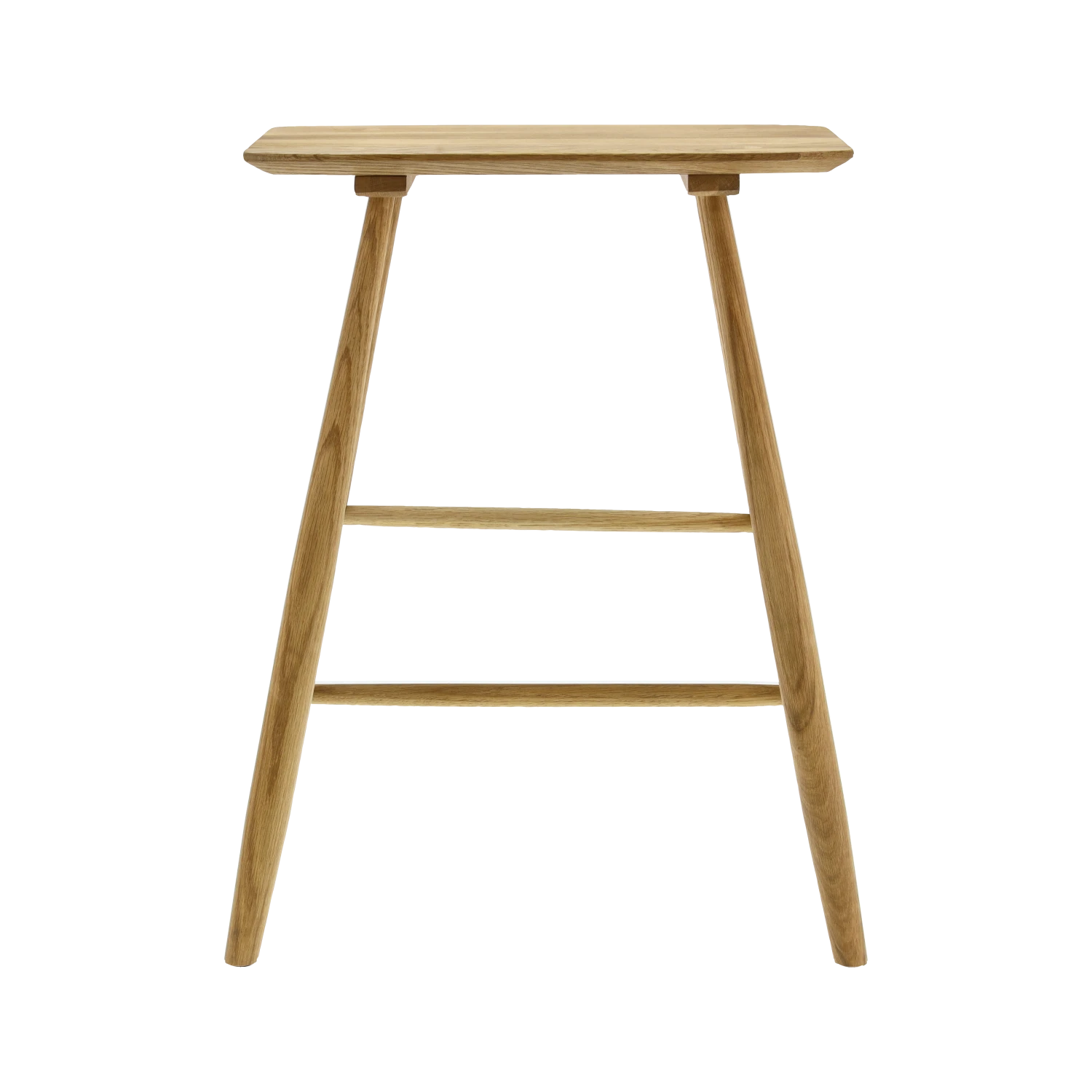 Hoher Hocker aus geöltem Eichenholz. Das schlichte, stilvolle Design passt perfekt zu einer skandinavischen Einrichtung mit entspannter Atmosphäre. Der Hocker kann auch als Barhocker verwendet werden und ist aus wunderschönem Eichenholz hergestellt. Für die Verwendung im Innenbereich.
