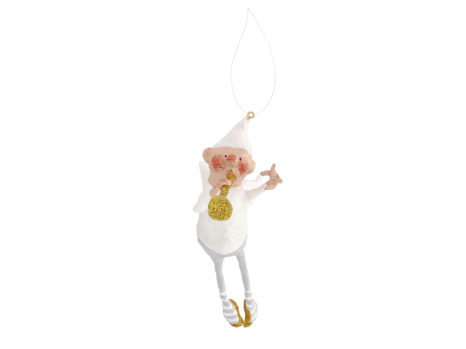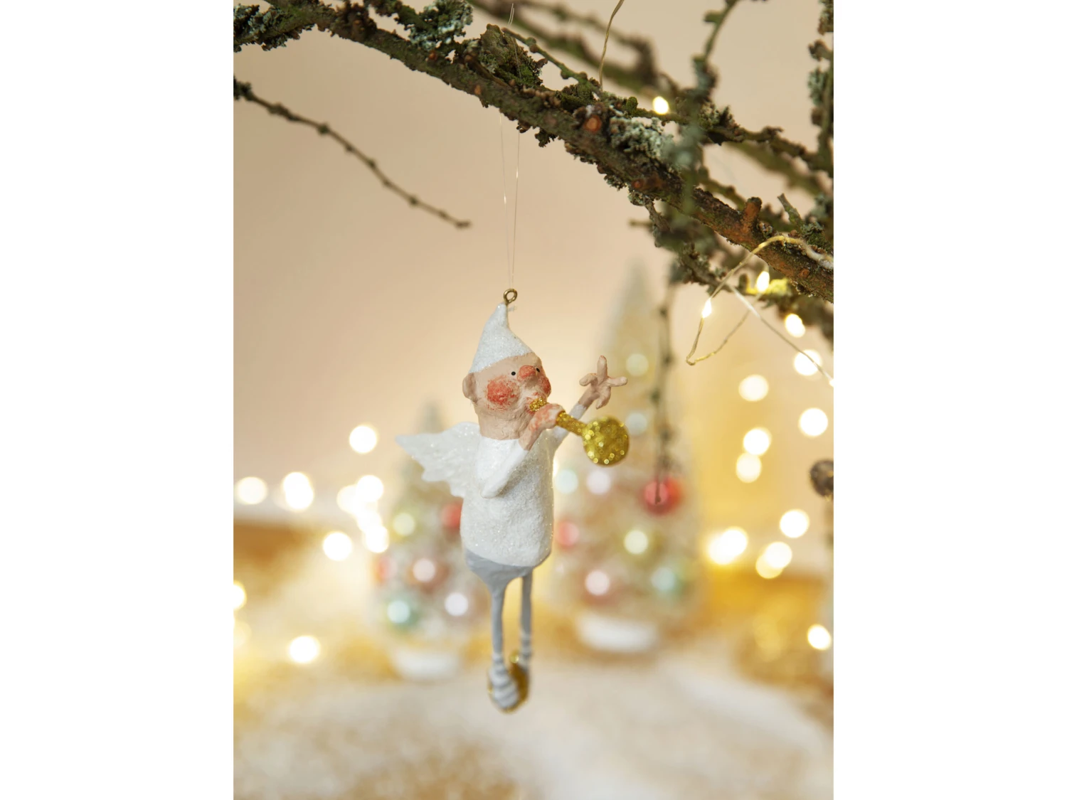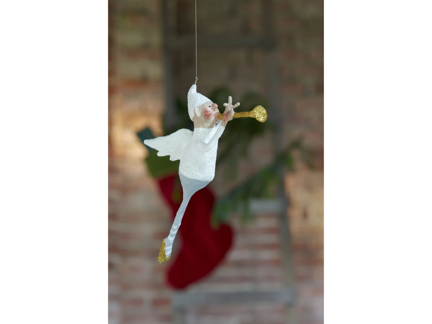 Der hübsche Weihnachtsengel Elmer ist eine wahre Augenweide. Mit Gold, Glimmer und glitzernden Flügeln verbreitet er mit seiner goldenen Trompete den bezaubernden Klang von Weihnachten. Lassen Sie Elmer in Ihrem Fenster schweben, oder hängen Sie ihn an einen Tannenzweig. 18 cm hoch.