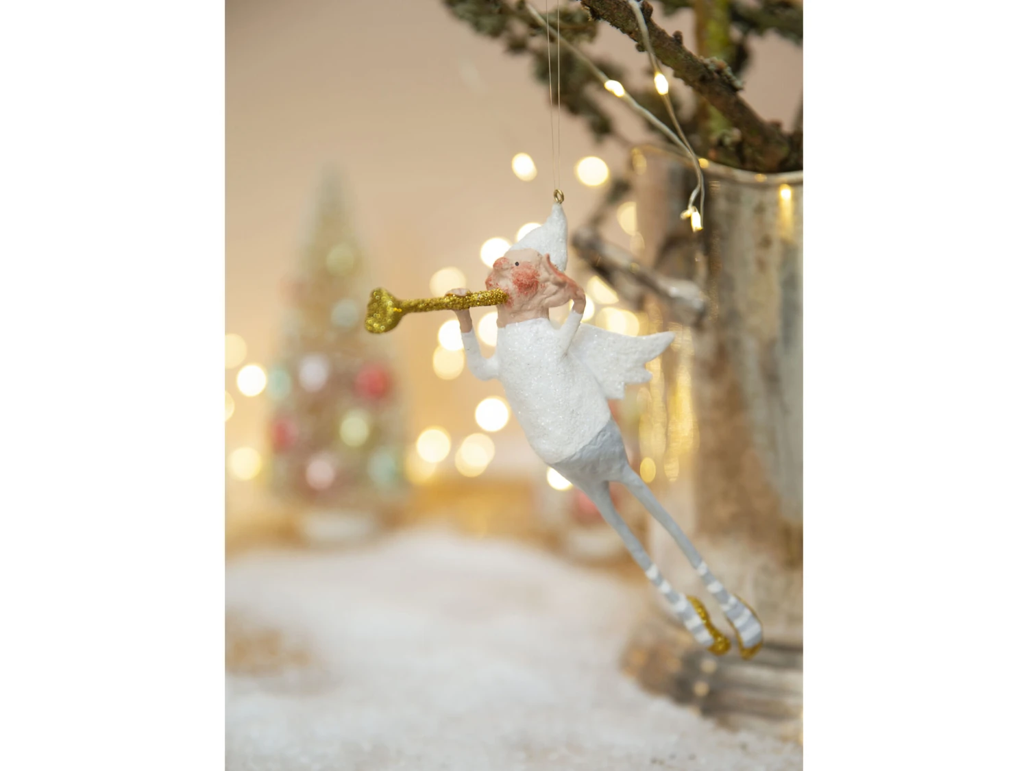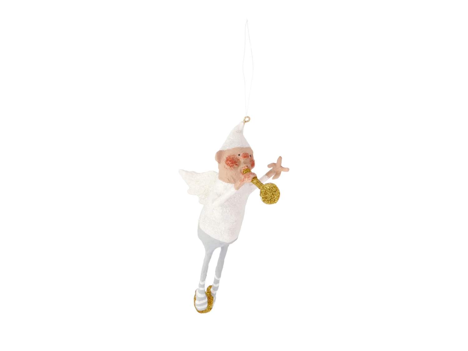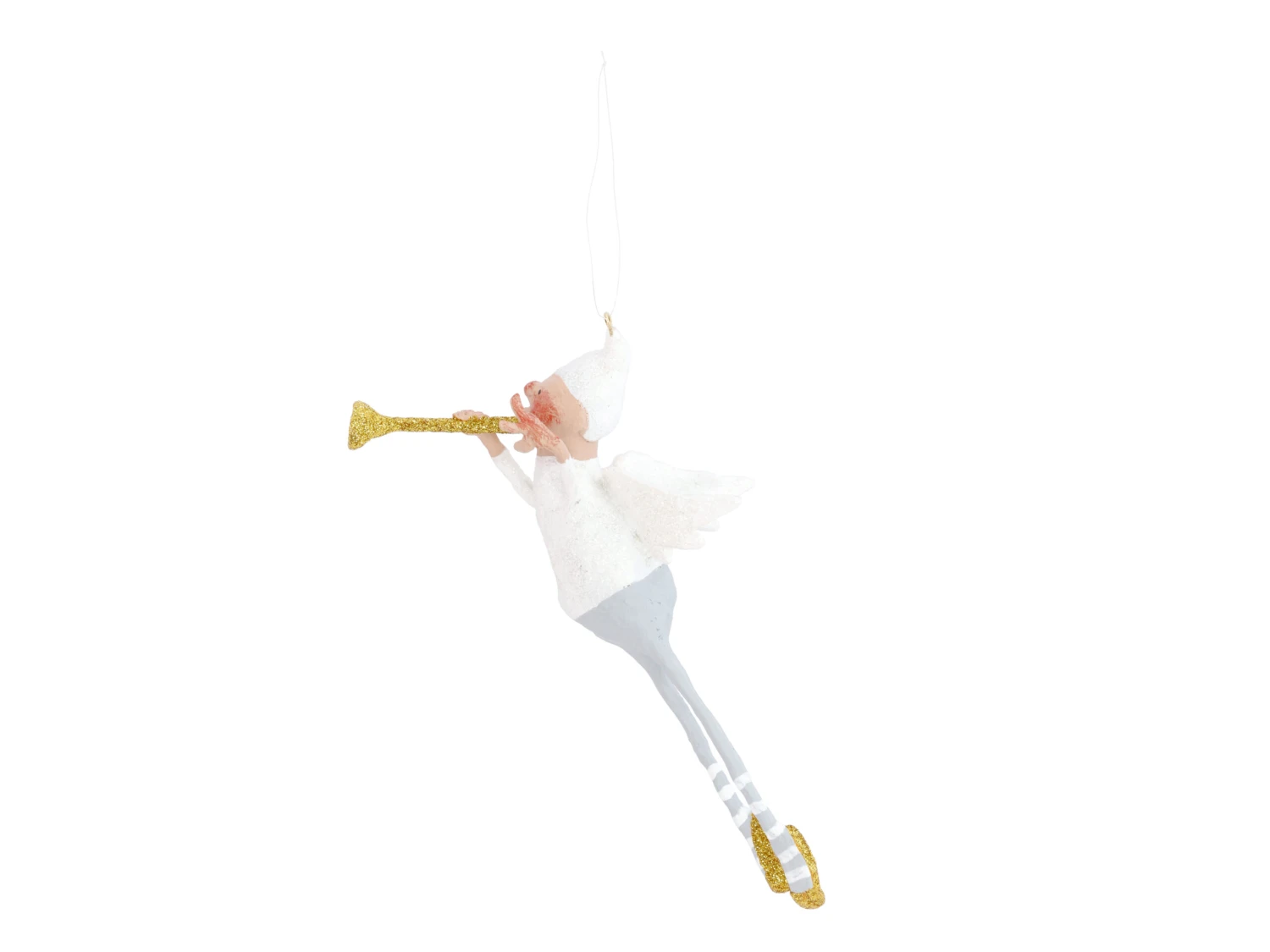 Der hübsche Weihnachtsengel Elmer ist eine wahre Augenweide. Mit Gold, Glimmer und glitzernden Flügeln verbreitet er mit seiner goldenen Trompete den bezaubernden Klang von Weihnachten. Lassen Sie Elmer in Ihrem Fenster schweben, oder hängen Sie ihn an einen Tannenzweig. 18 cm hoch.