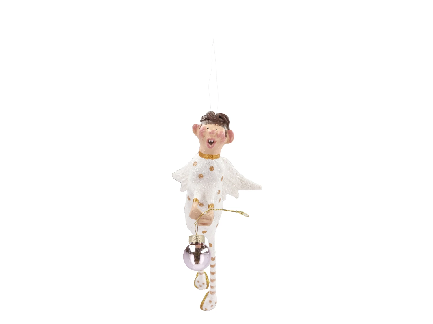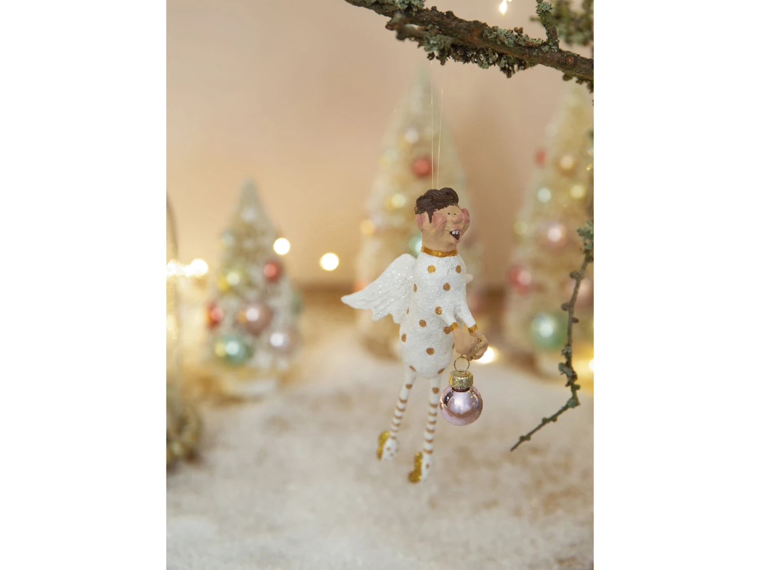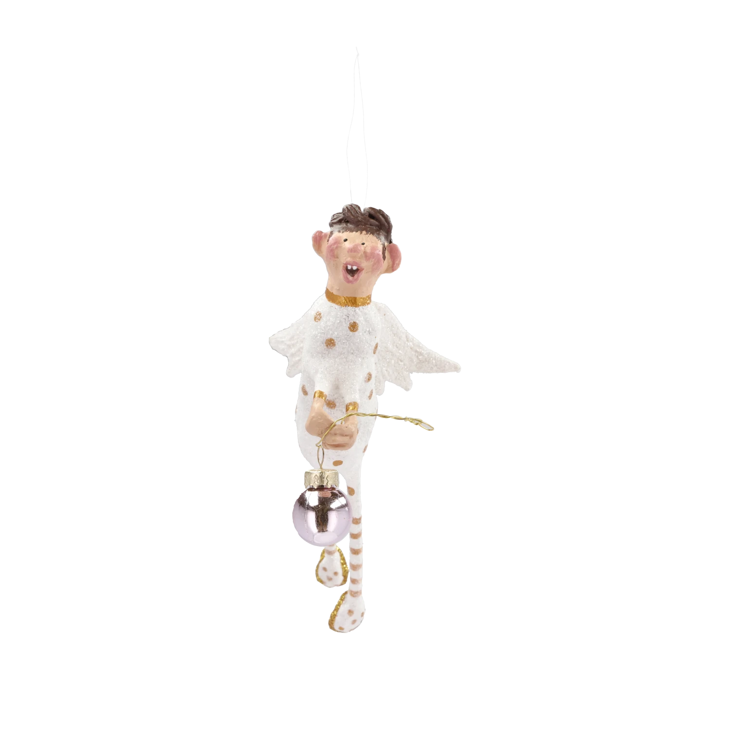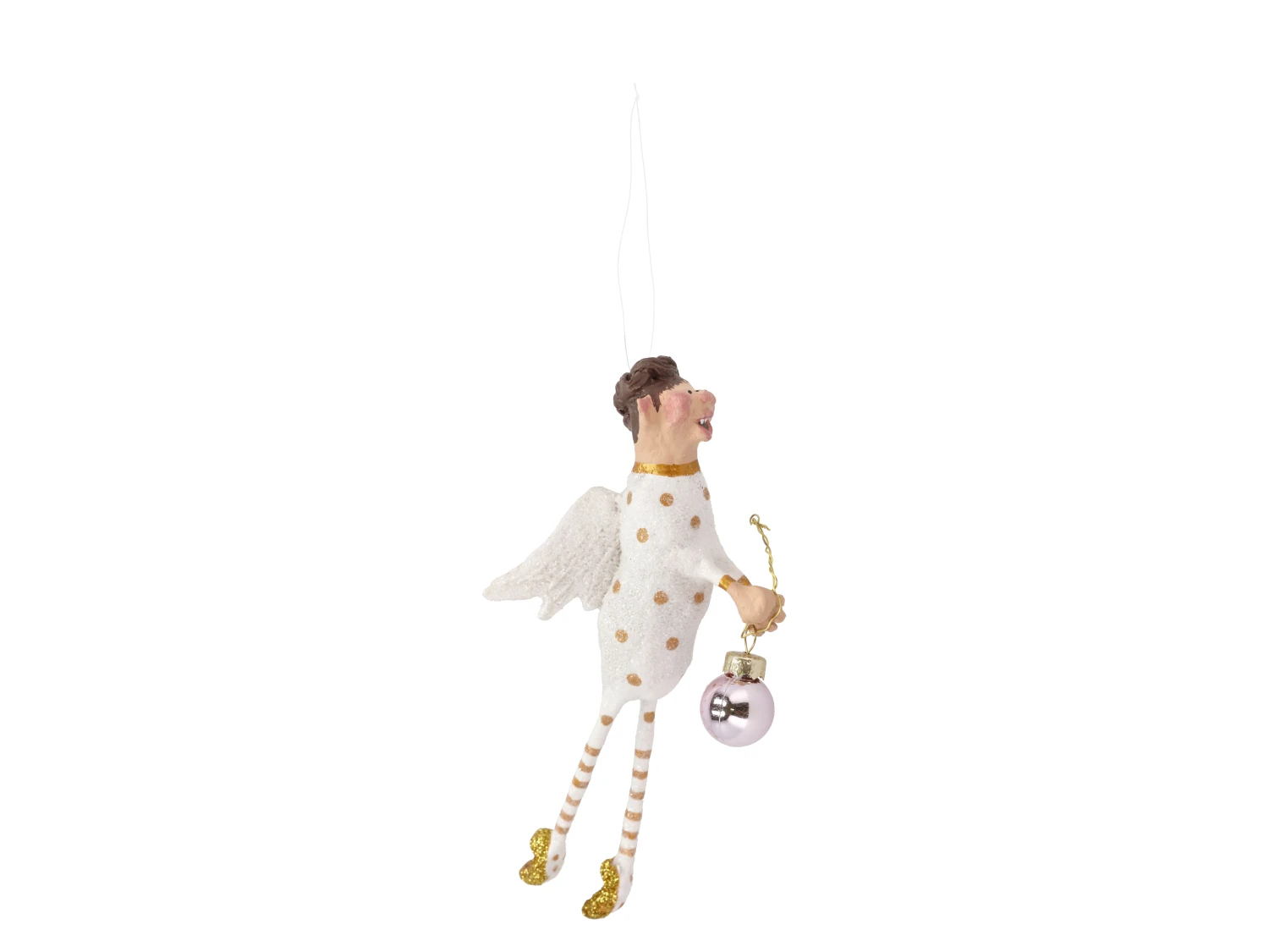 Der hübsche Weihnachtsengel Elsie ist eine wahre Augenweide. Mit Gold, Glimmer und glitzernden Flügeln verbreitet sie mit ihrer kleinen, rosa Weihnachtskugel die beste Weihnachtsstimmung. Lassen Sie Elsie in Ihrem Fenster schweben, oder hängen Sie sie an einen Tannenzweig. 18 cm hoch.