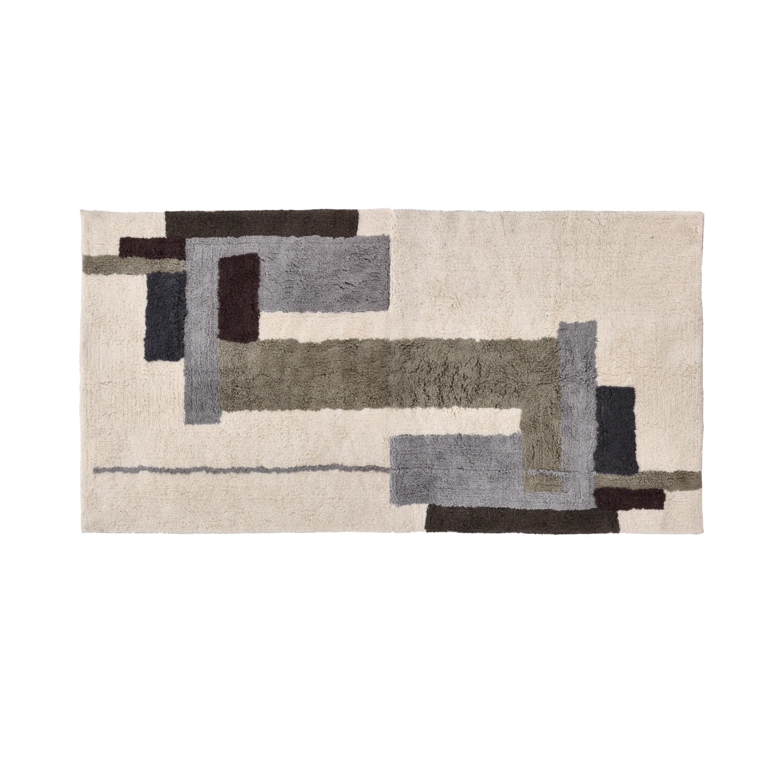 Hübscher Teppich aus 100 % Baumwolle mit einem tollen grafischen Muster, das dem Raum eine angenehme und entspannte Atmosphäre verleiht. Legen Sie den Teppich auf den Boden oder hängen Sie ihn an die Wand und schaffen Sie einen hübschen und persönlichen Zusammenhang in Ihrer Einrichtung. Auf der Rückseite, in den Ecken und in der Mitte der Seiten sind Laschen angebracht, sodass der Teppich auf vier verschiedene Arten aufgehängt werden kann.
