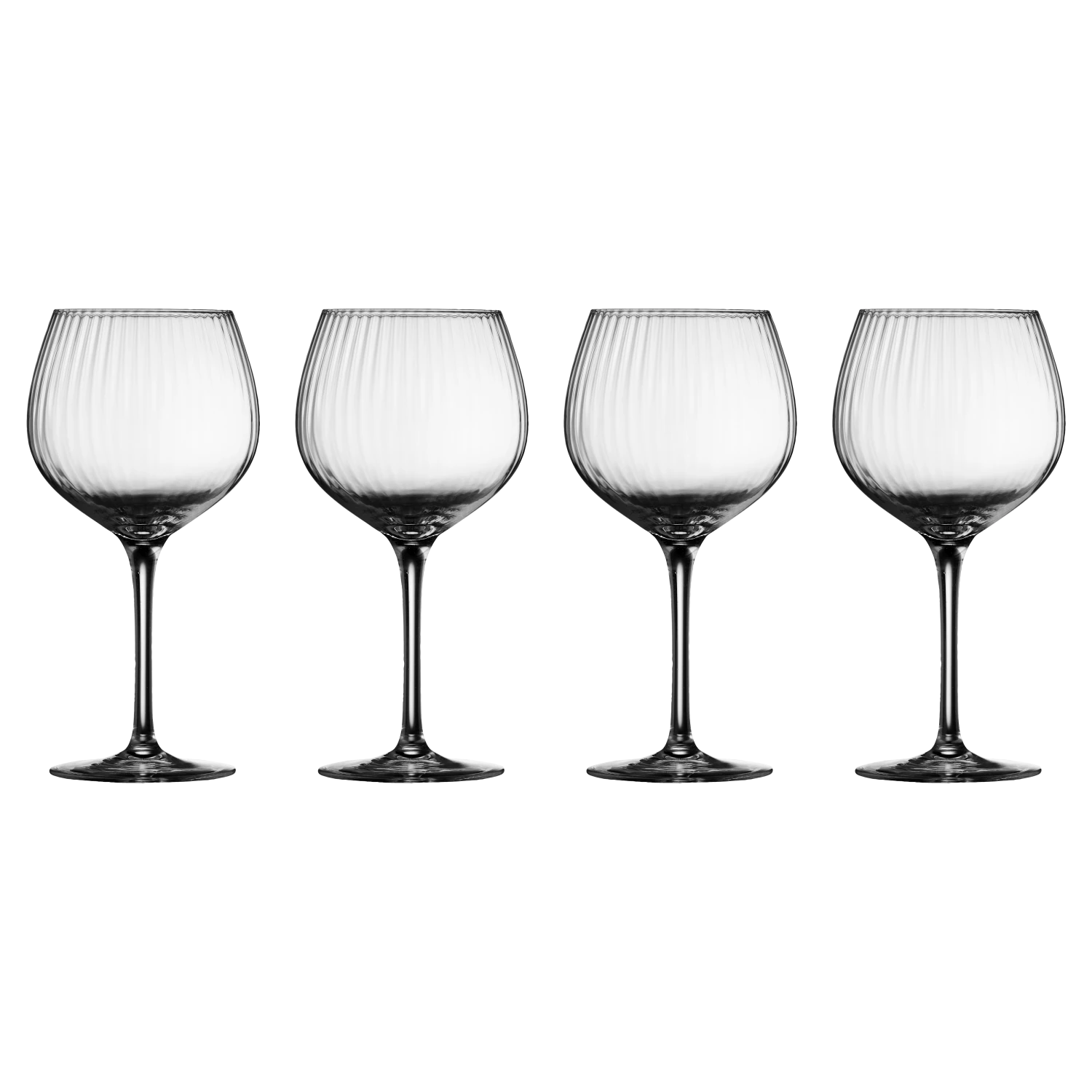 Hübsches Gin&Tonic-Glas mit weichen, abgerundeten Formen. Das elegante, geriffelte Design verleiht dem Glas einen tollen Vintage-Look, der gleichzeitig die Trends der Zeit widerspiegelt. Servieren Sie einen G&T in den Gläsern und die hübschen Facetten reflektieren das Licht und den Inhalt der Gläser auf wunderschöne Art und Weise. 65 cl. Set mit 4 Stck.