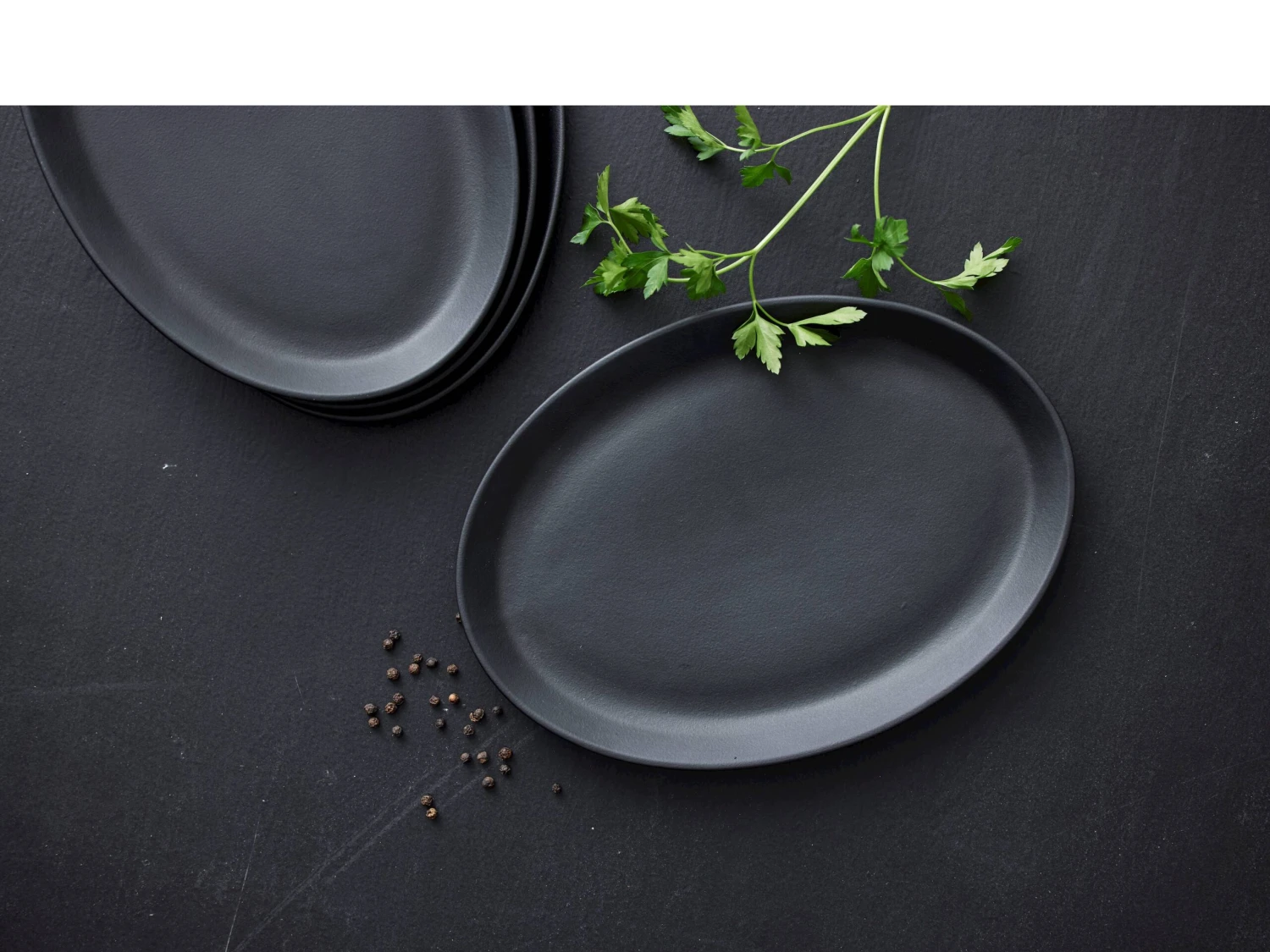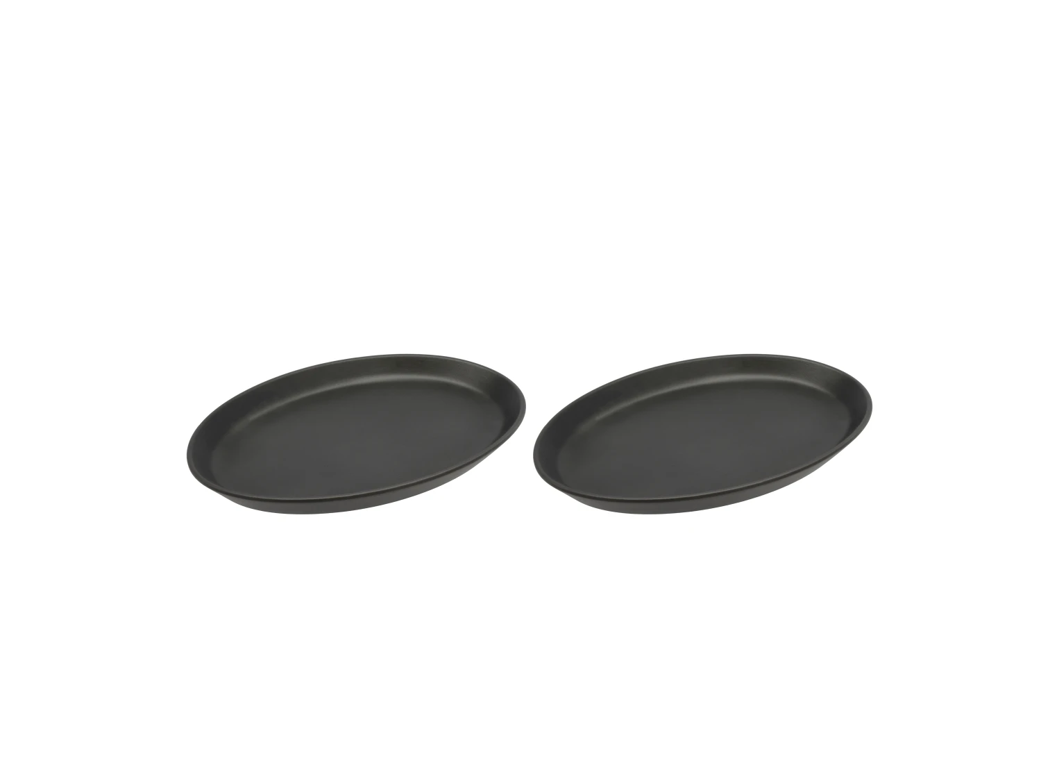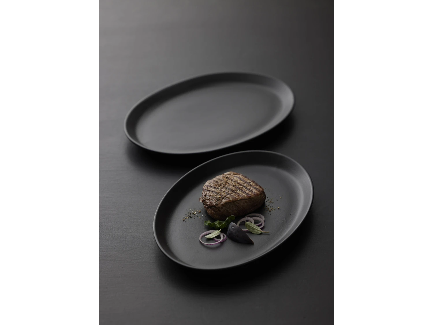2 elegante Steak-Teller aus schwarz emailliertem Steinzeug. Die Teller haben eine hübsche, ovale Form mit einer höheren Kante auf der einen Seite, sodass sich die Sauce oder der Fleischsaft sammeln und auf dem Teller bleiben. Zum Servieren geeignet. Die Teller vertragen bis zu 250 Grad im Backofen. 28 x 20 cm.