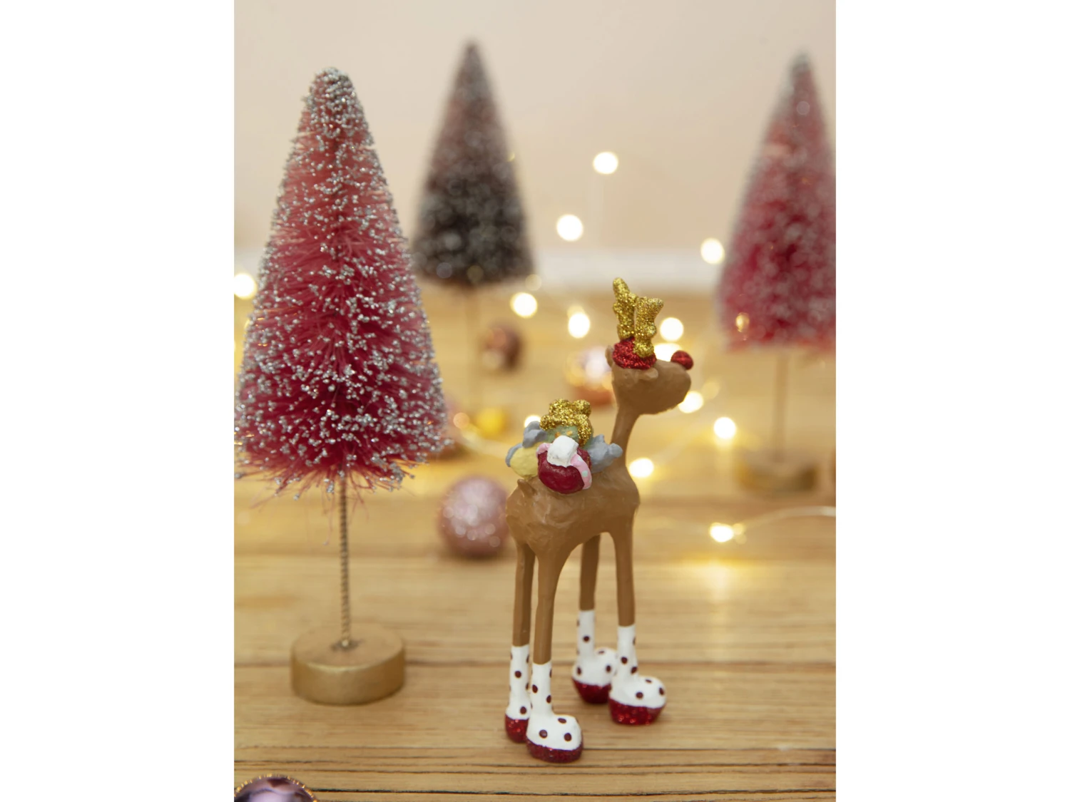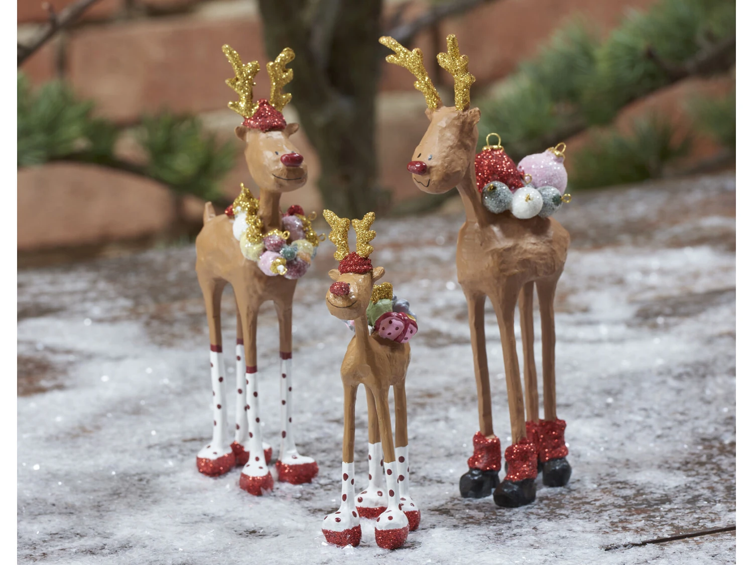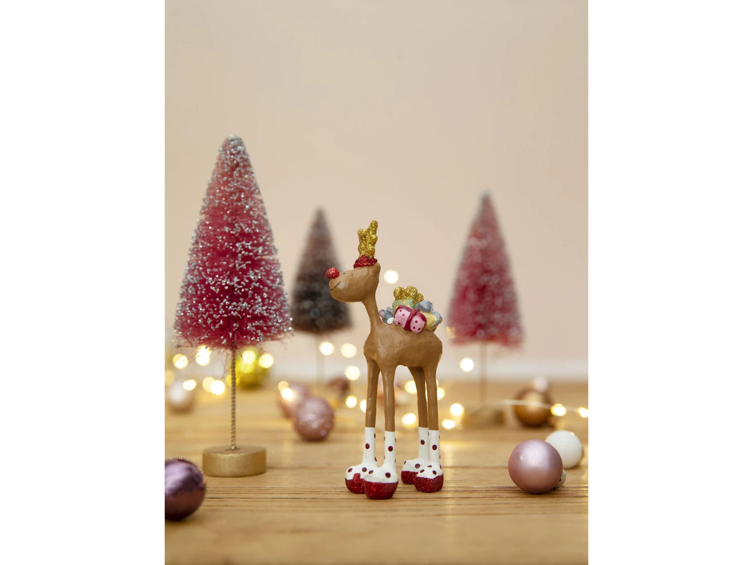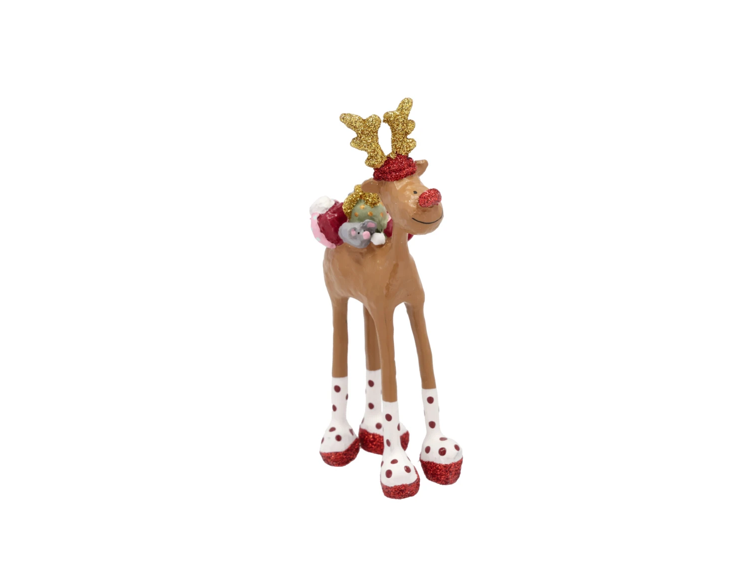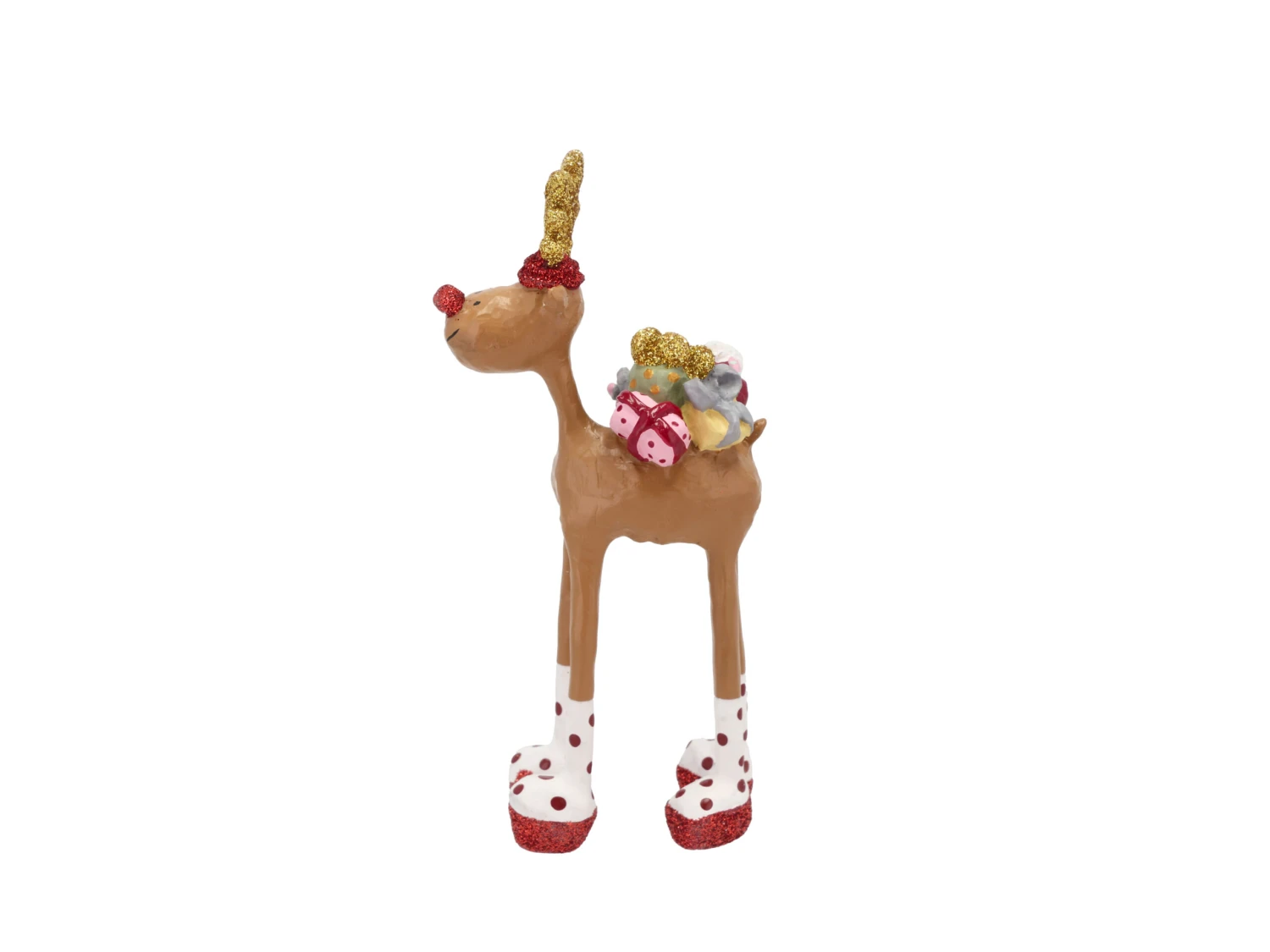 Hier ist Peter. Zu Weihnachten hat er die Rolle des gut gelaunten Geschenke-Verteilers übernommen. Mit einem Berg von Paketen auf dem Rücken verbreitet er Freude und Erwartung, wo immer er auch auftaucht. Lassen Sie ihn zu Weihnachten das Haus schmücken. Und warum nicht in Begleitung einiger seiner anderen Rudolf-Freunde?