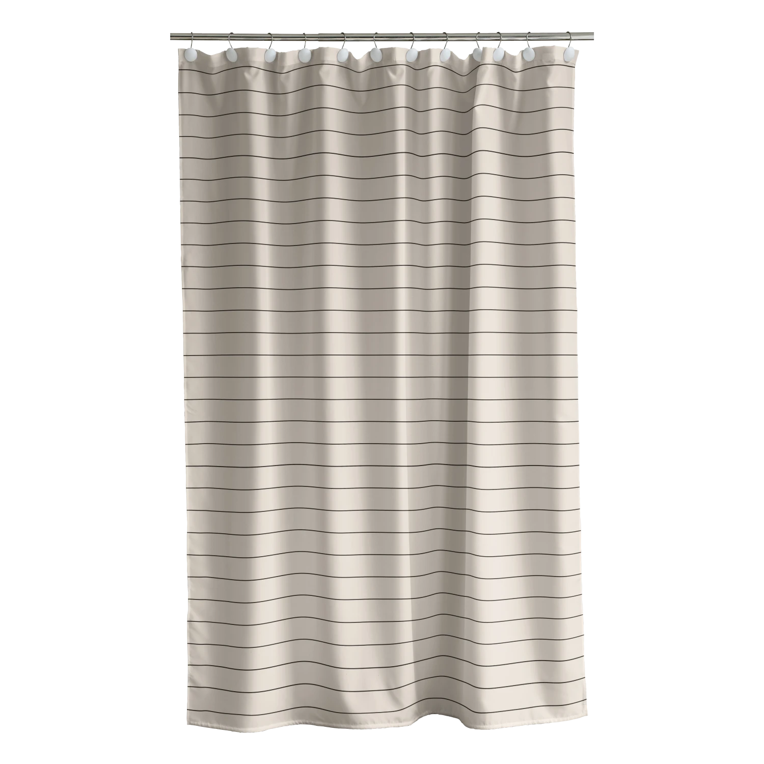 Der Duschvorhang Line mit den schlichten Querstreifen passt perfekt zum Handtuchsortiment der Serie und lässt sich in jeden Badezimmerstil integrieren. Duschvorhänge sind eine praktische Lösung, aber sie sind auch eine Möglichkeit, das Bad zu individuell zu gestalten, indem sie für Ästhetik und einen weichen Look sorgen.