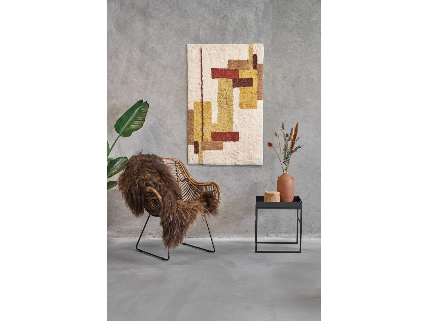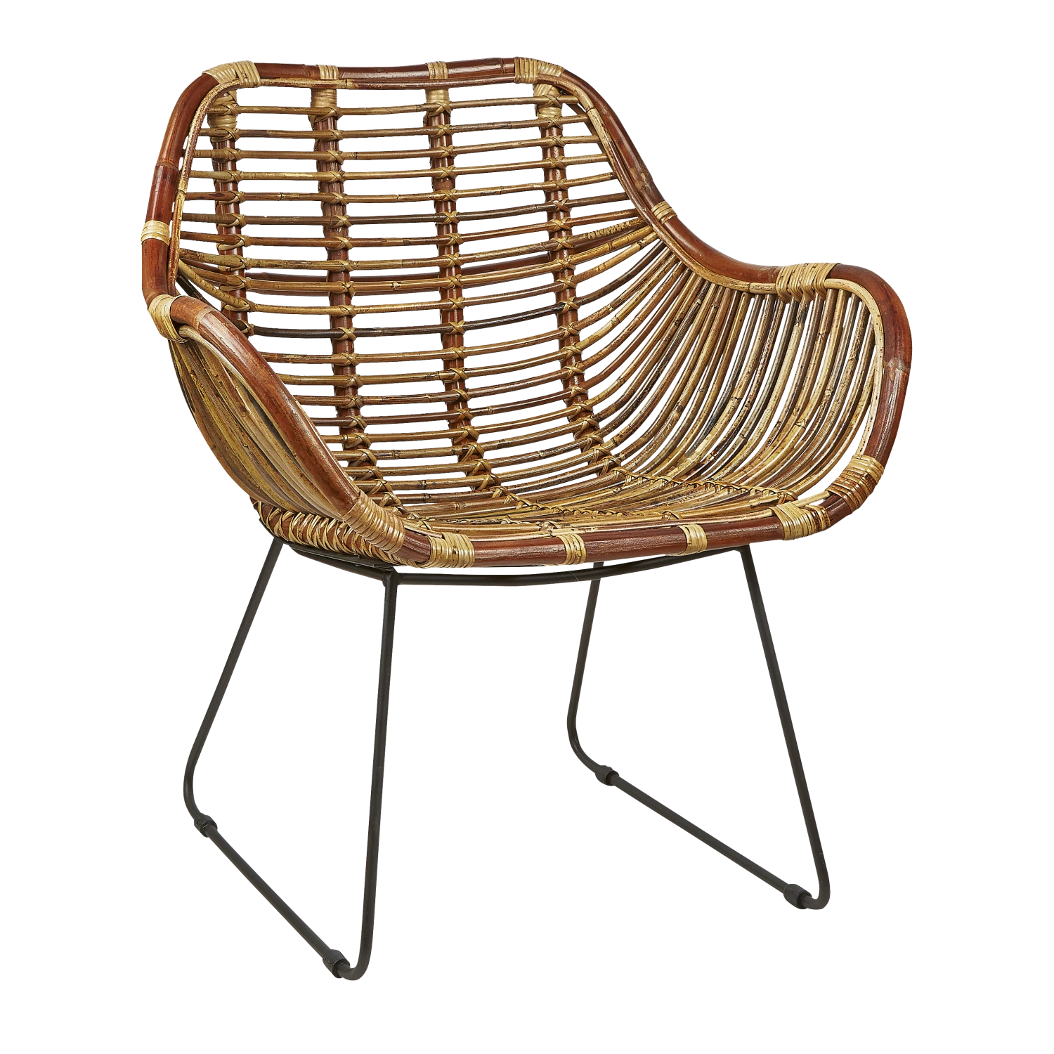 Stuhl aus Natur-Rattan mit schwarzem Metallrahmen. Mit dem hübschen und natürlichen Rattan holt der Stuhl die Natur in die Wohnung. Eine weiches Fell im Stuhl kann als hübsches kleines Detail dienen, das dem Stuhl einen neuen und anderen Look verleiht.