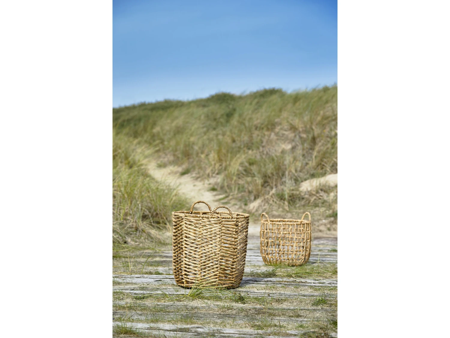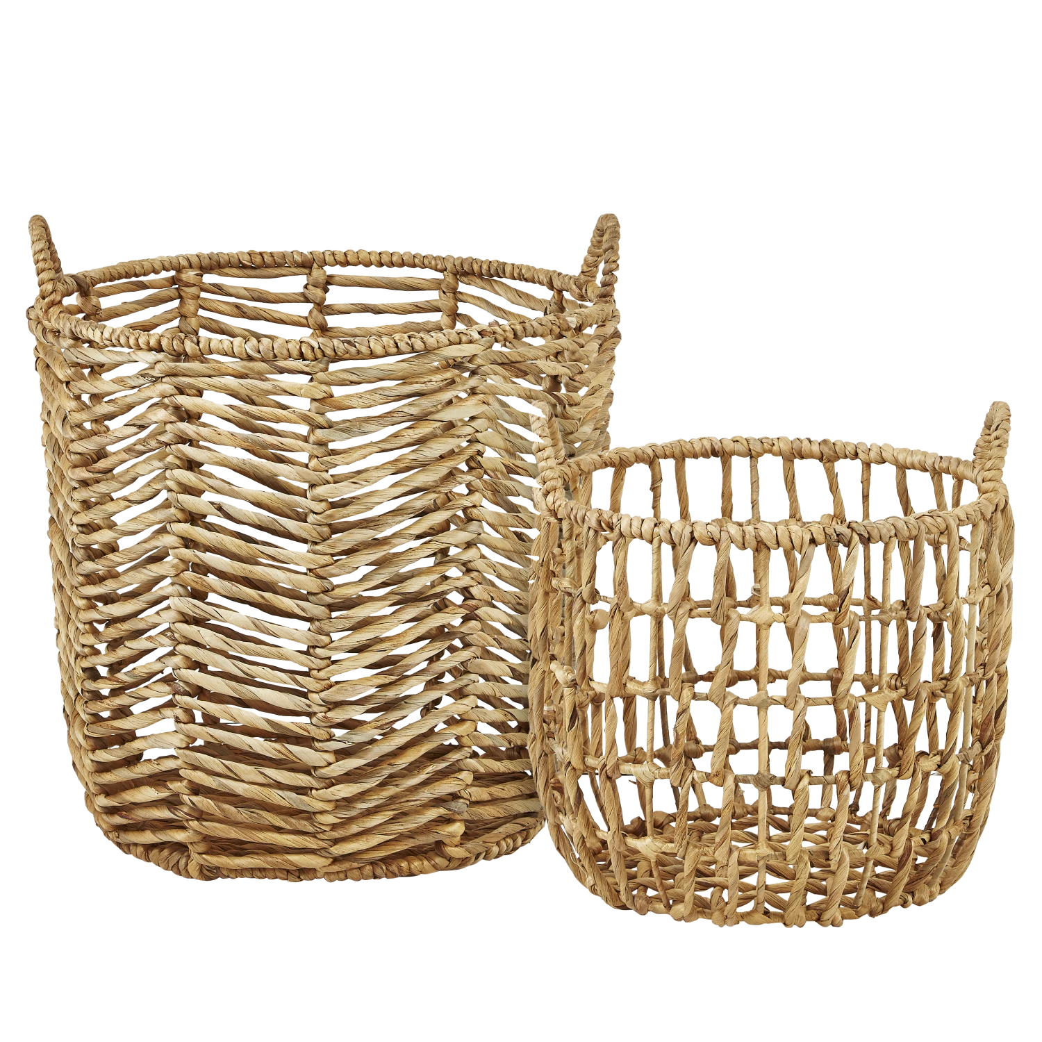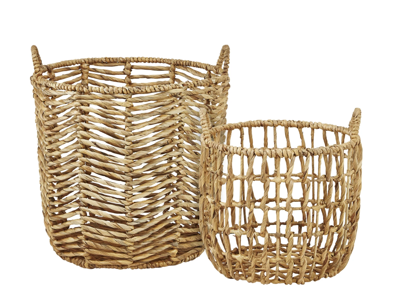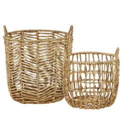 Korb-Set mit Griff aus Wasserhyazinthe. Die geflochtenen Körbe sind eine tolle Aufbewahrungslösung für Kleinigkeiten wie Strickzeug oder das Spielzeug der Kinder. Die Körbe sehen auch sehr hübsch als Übertöpfe für Grünpflanzen aus.