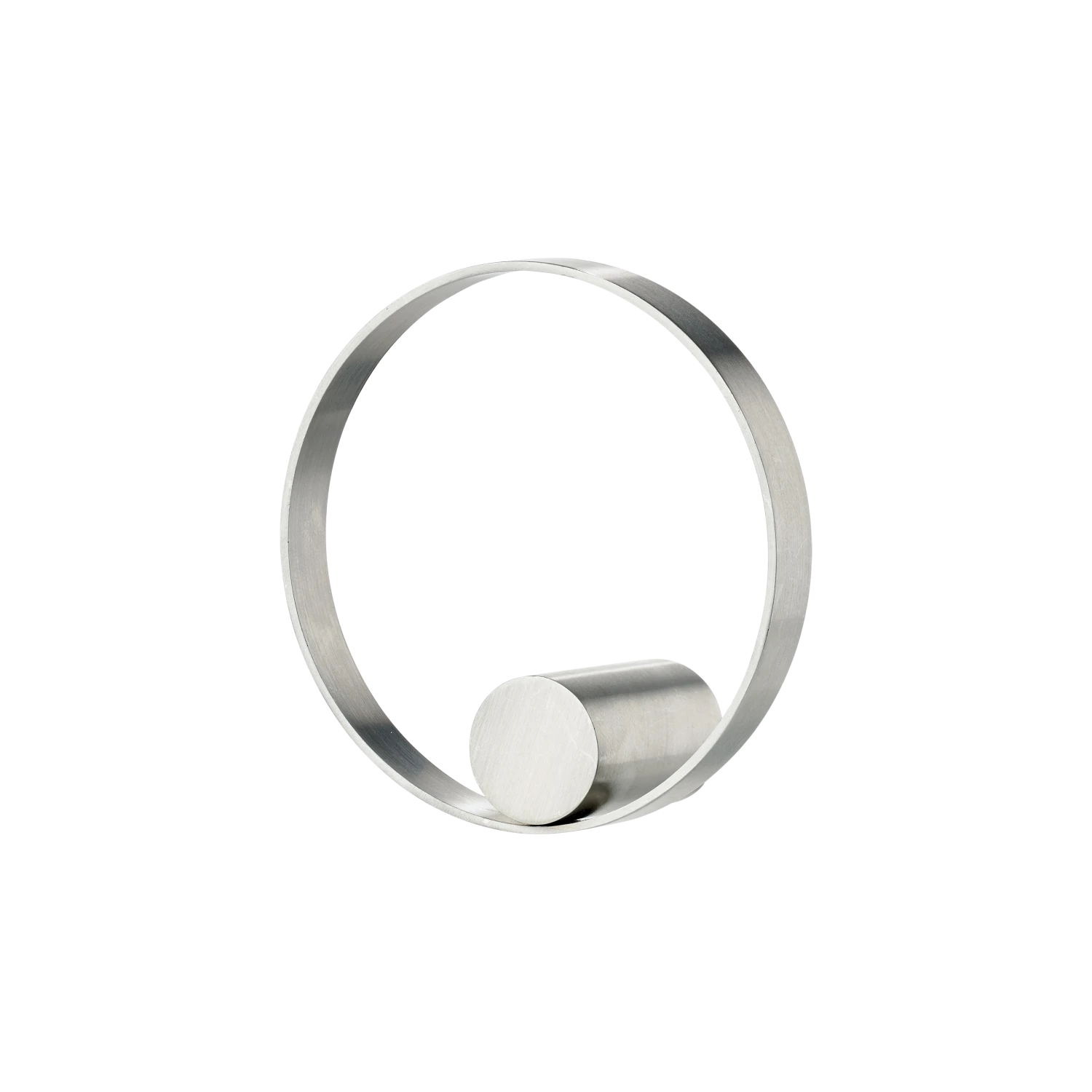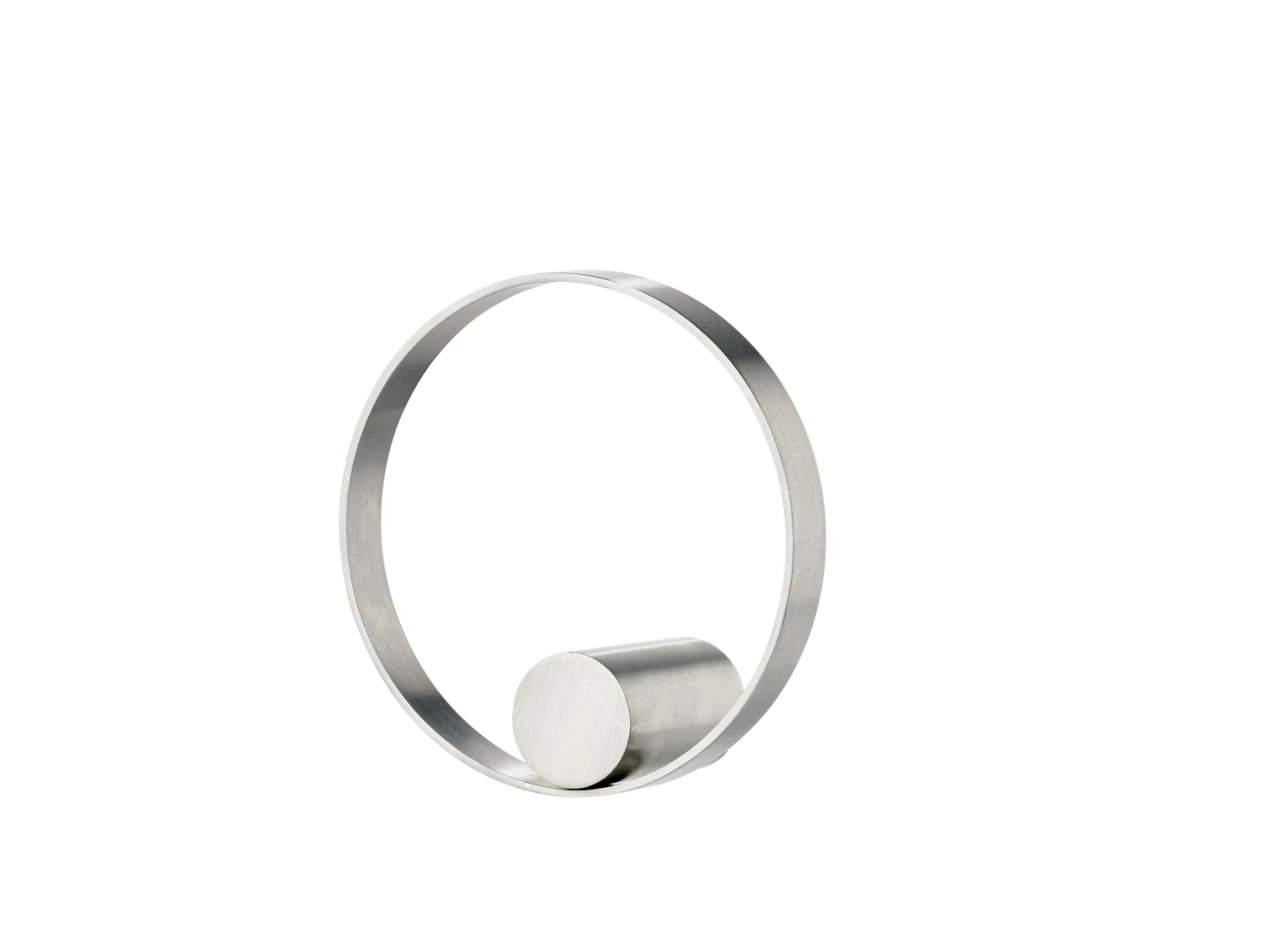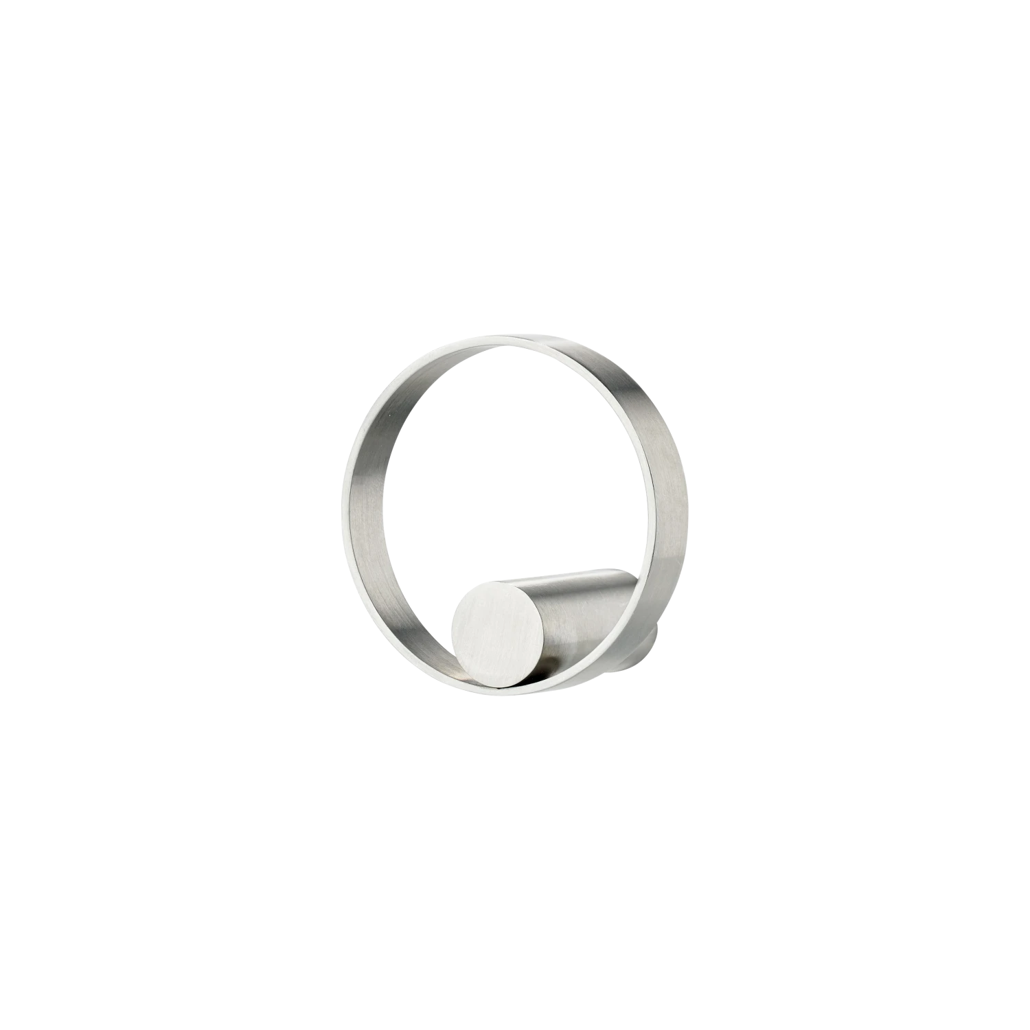 Das Dekorative Haken Hooked Onm Rings, kann mit seinem Multifunktionalen Design auf verschiedene Arten verwendet werden, Werfen sie Den Bademantel, das Handtuch oder Ihrer Mäntel über den Ring. Oder ziehen Sie z.B. Tücher oder Schals durch. Der Haken besteht aus gebürstete Stahl. Durchmesser 5 cm.