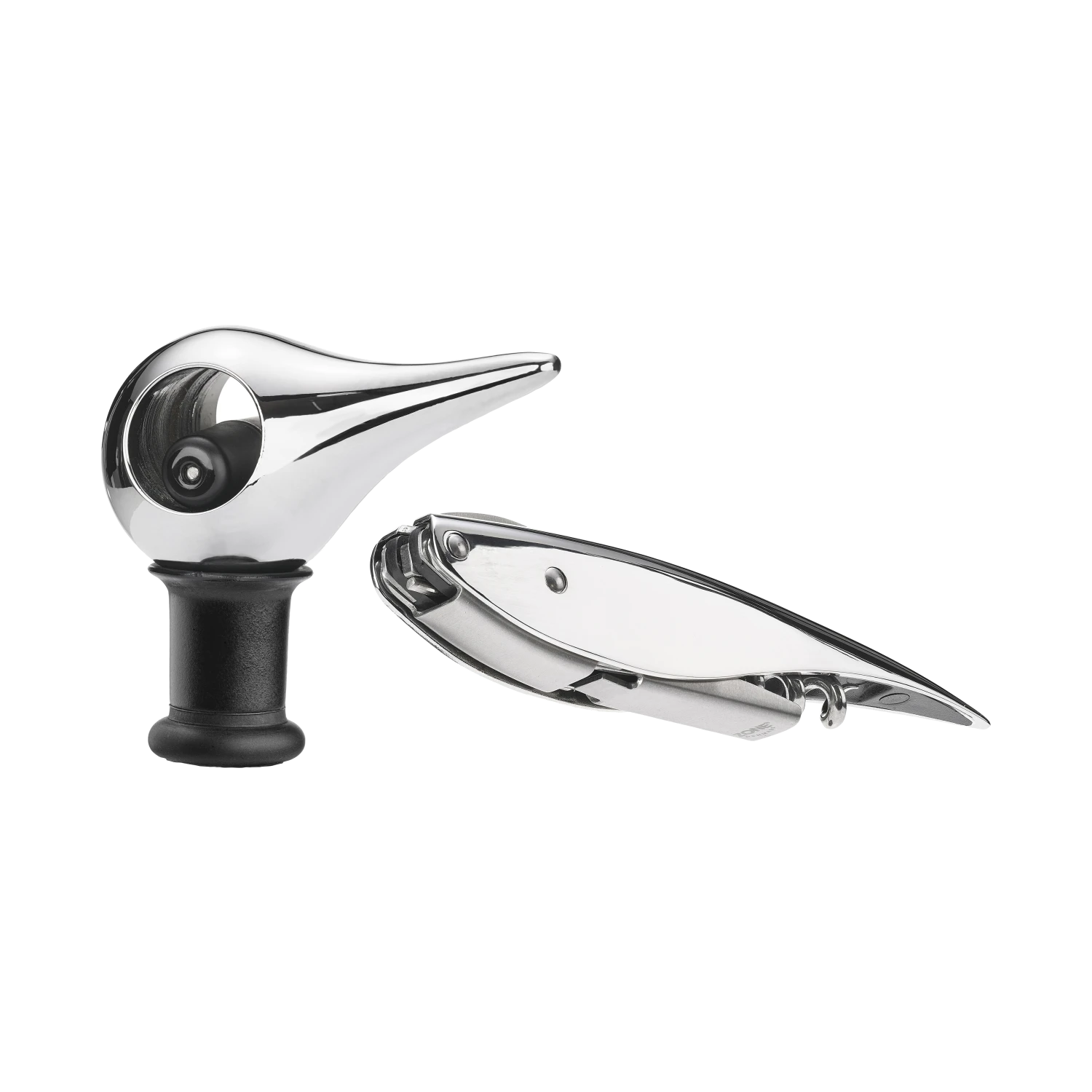 Das elegante Weinset von Zone besteht aus einem Bird Weinverschluss und einem Feather Korkenzieher. Feather ist eine tolle Interpretation eines Kellnerwerkzeugs, sozusagen ein Klassiker in neuen Kleidern. Feather hat einen eingebauten Folienschneider und einen Öffner, und der biegsame Arm macht es einfach, die Flasche in zwei Schritten zu öffnen, ohne viel Kraft aufwenden zu müssen. Kann leicht zusammengeklappt und z. B. zu einem Picknick mitgenommen werden. Das elegante figurative Design des Bird Weinverschlusses hat eine geniale Funktion. Setzen Sie den Verschluss auf die offene Weinflasche, wippen Sie den Schnabel des Vogels zur anderen Seite und Sie haben eine völlig dicht schließende Flasche. Die Flasche kann sogar im Kühlschrank liegen, bis Sie wieder Lust auf ein Glas Wein haben. Design: Mencke und Vagnby.